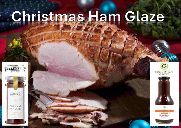 Assortment of Christmas Ham Glazes:- * Condiment Grove - Peach Bourbon BBQ GLaze * Beerenberg - Pinapple, Mustard & Christmas Spices
